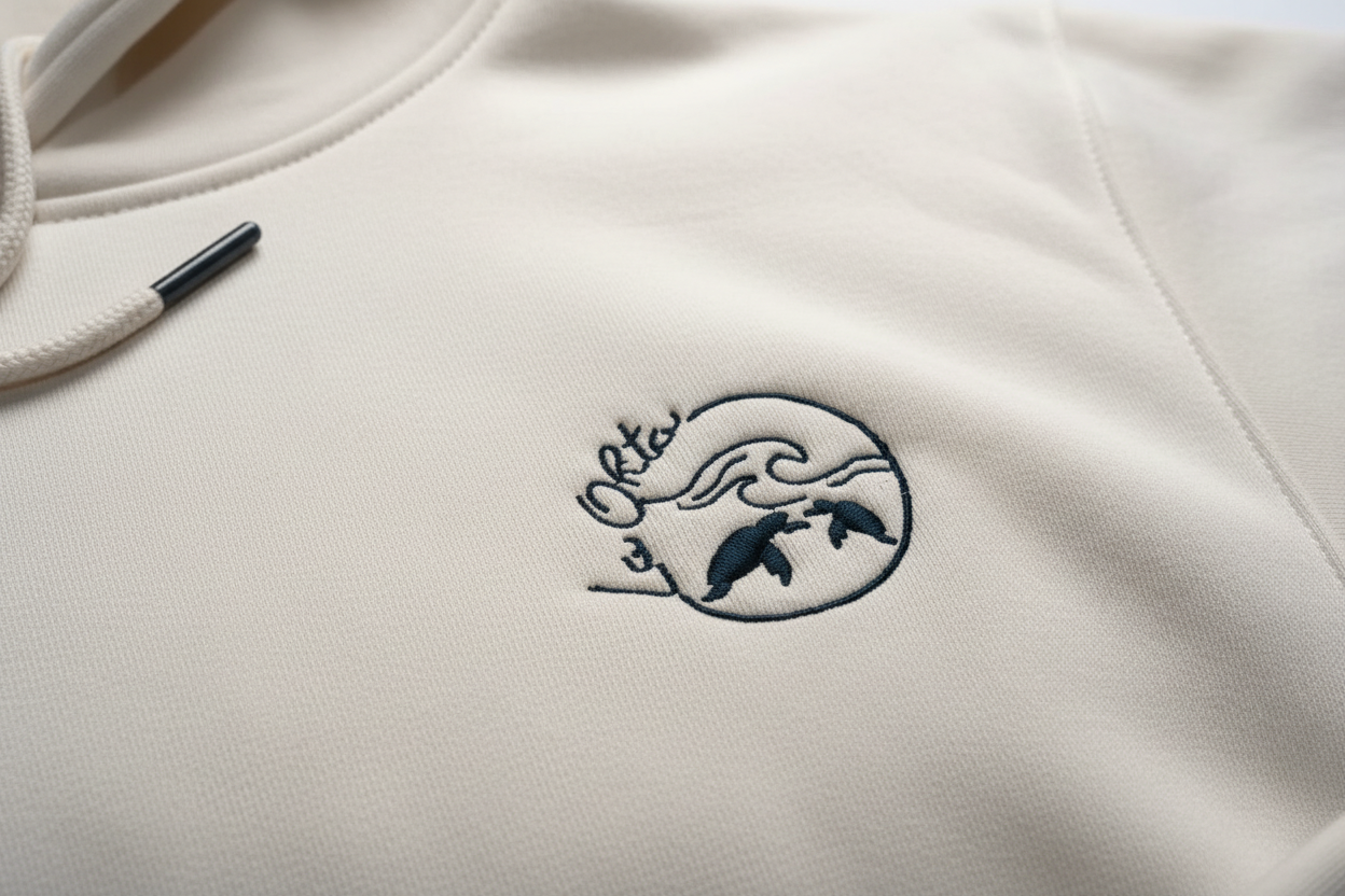 Premium unisex thick hoodie with Wave & Peaks embroidery.